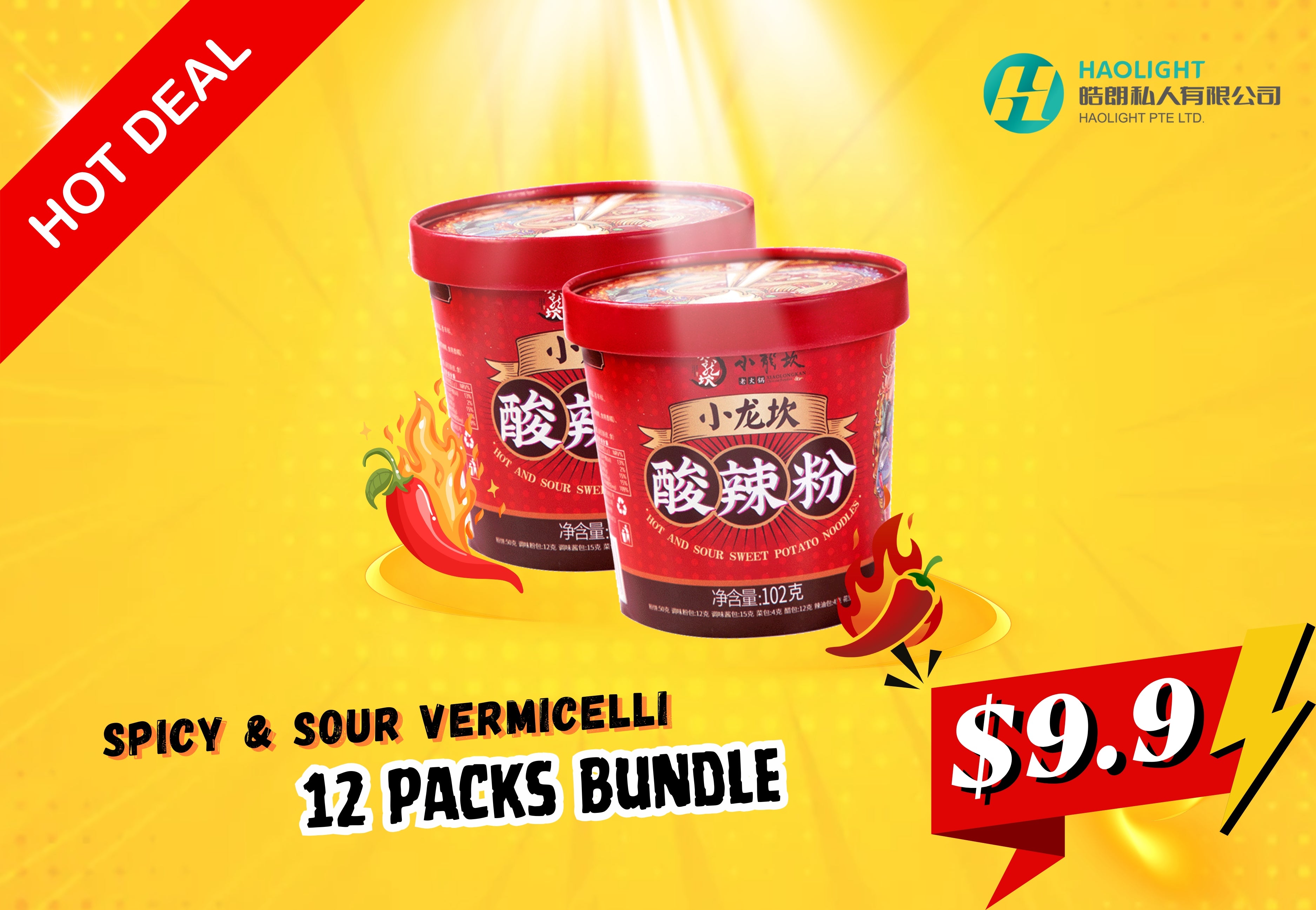 Xiao Long Kan Spicy & Sour Vermicelli – Carton of 12 Packs (Instant Sichuan Hot & Sour Noodles, Ready-to-Eat)